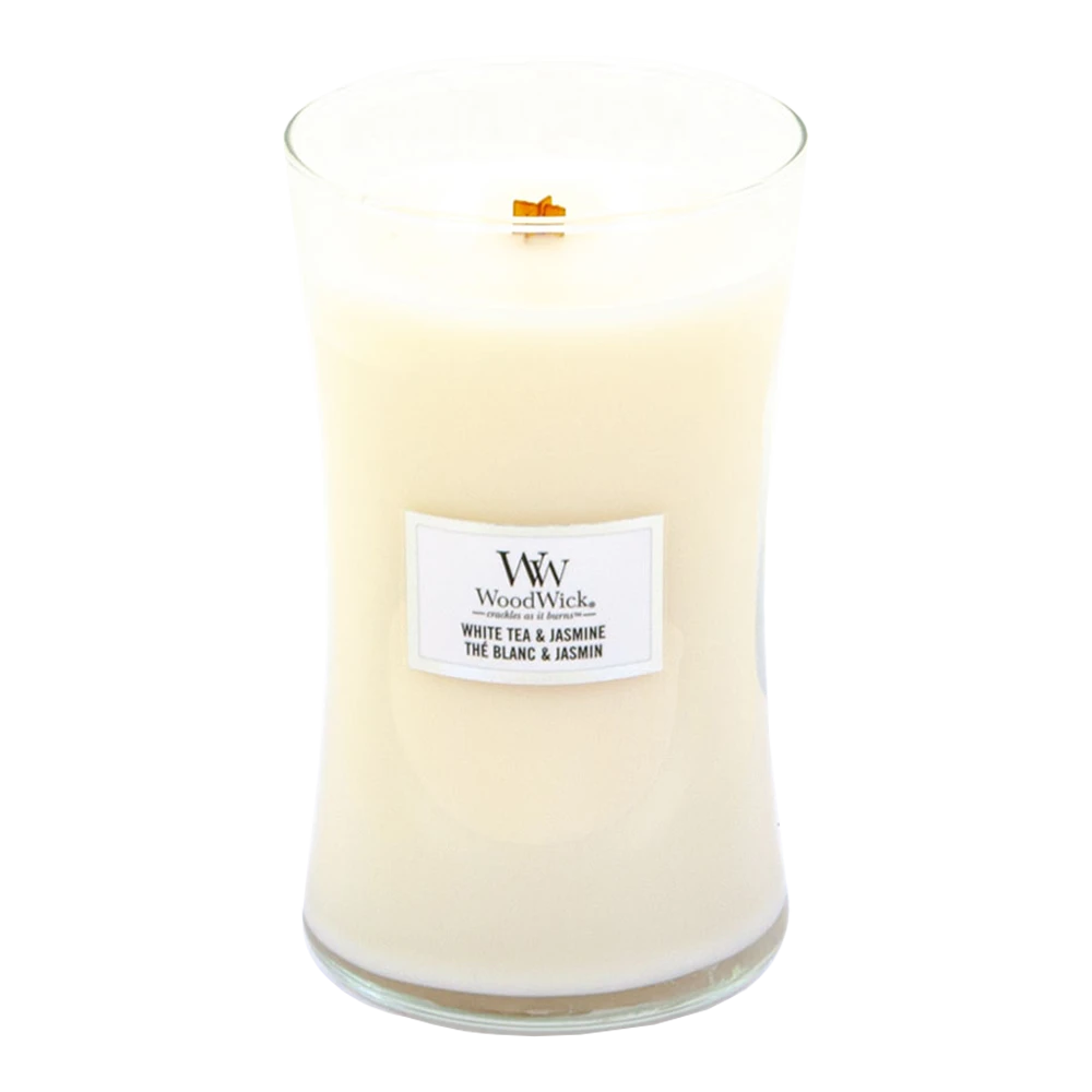 Woodwick White Tea & Jasmine Large Candle – Geurkaars